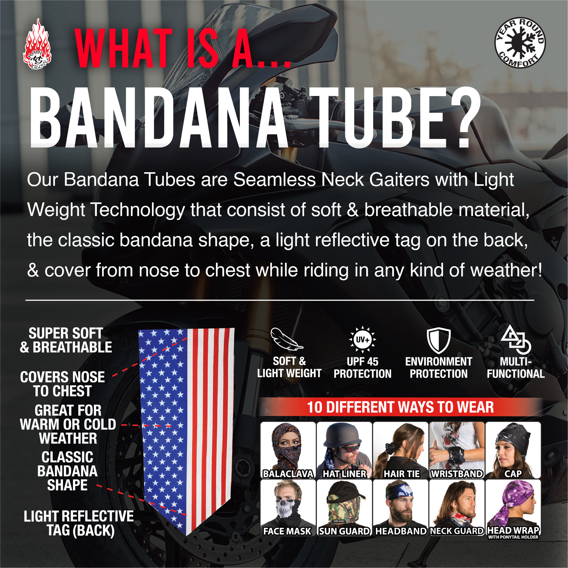 Worn by motorsports enthusiasts for many years, the Hair Glove® line is now expanding to include any extreme sports activities.